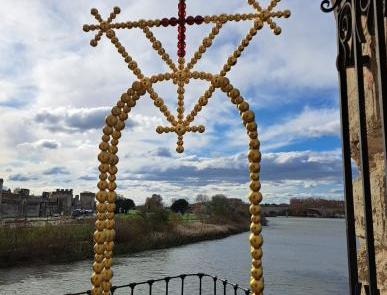Intitulée « Cosmos ou Les fantômes de l’amour », cette exposition fête un anniversaire : les 25 ans d’Avignon capitale européenne de la culture et les 30 ans de son inscription au patrimoine mondiale de l’UNESCO. Nous avons pu investir trois lieux : le palais des papes, le petit palais ainsi que le pont d’Avignon rendu difficilement accessible en raison des 90 kms heure du mistral particulièrement fort le jour de notre visite.