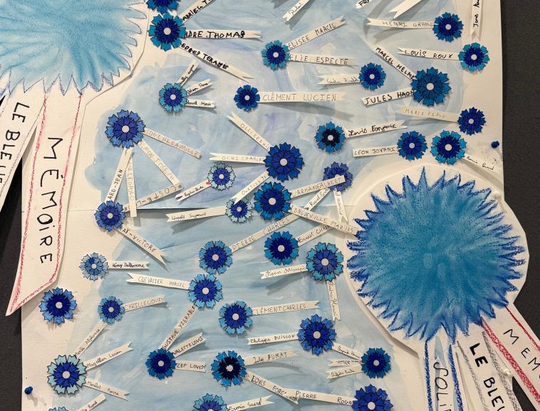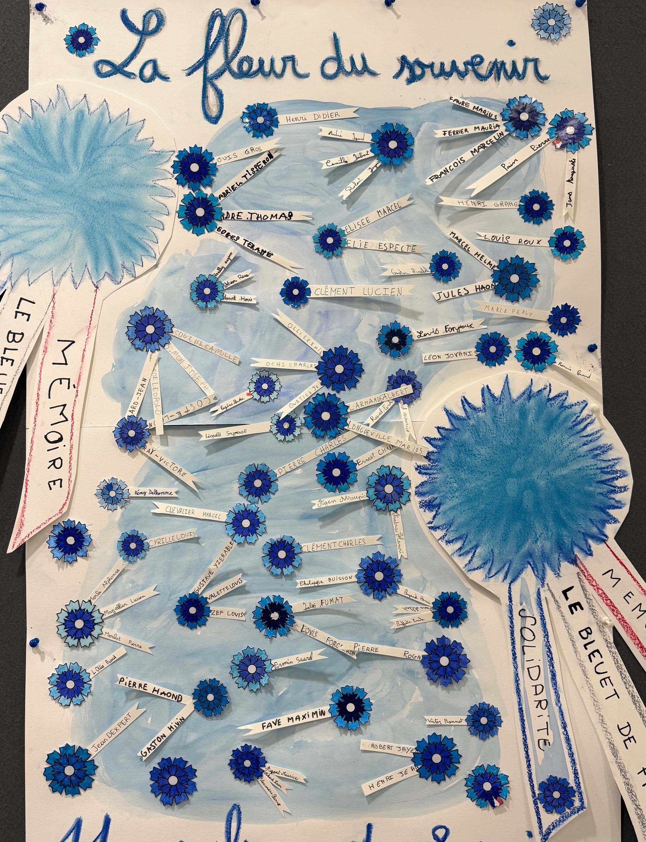 Les élèves de la classe de CM2 B ont travaillé sur le Bleuet de France, symbole né des blessures de la grande guerre, fleur du souvenir et aujourd’hui symbole de solidarité.