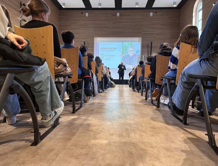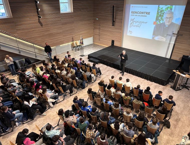 Monseigneur François DURAND, évêque de Valence, est intervenu auprès de tous nos collégiens. Après une rapide présentation de son ministère et du rôle d’un évêque, il a pu répondre à leurs questions. Merci pour ces beaux moments d’échange.