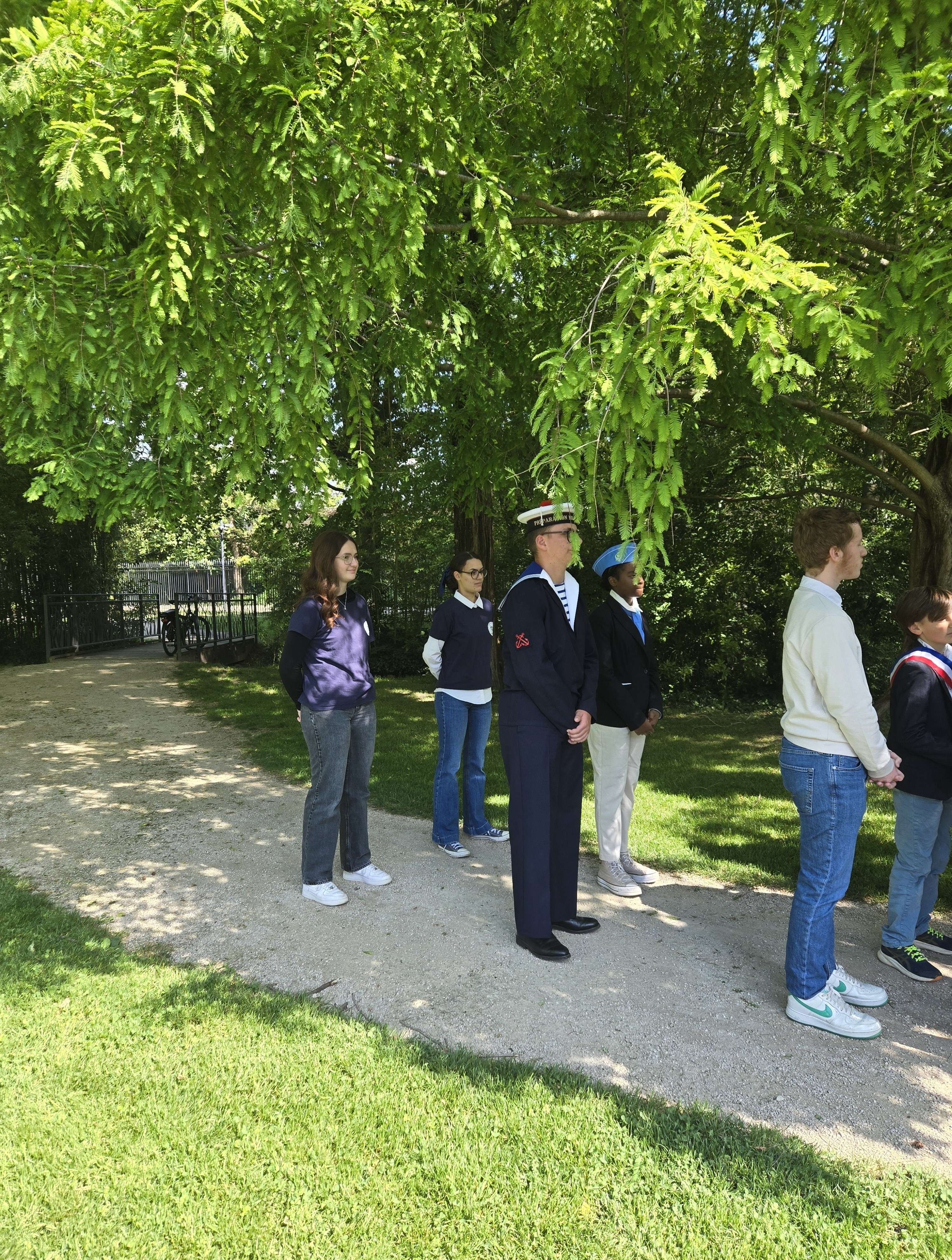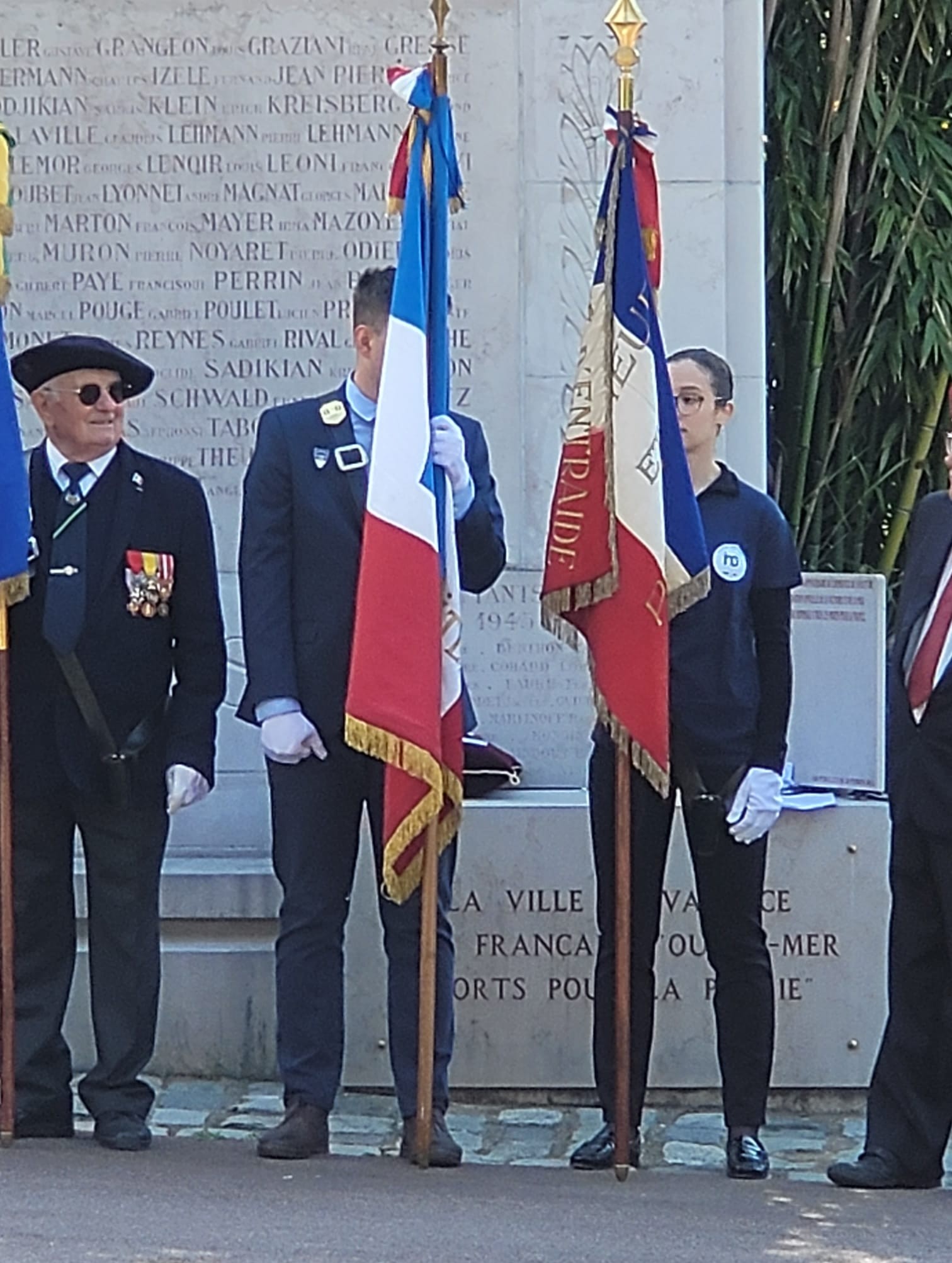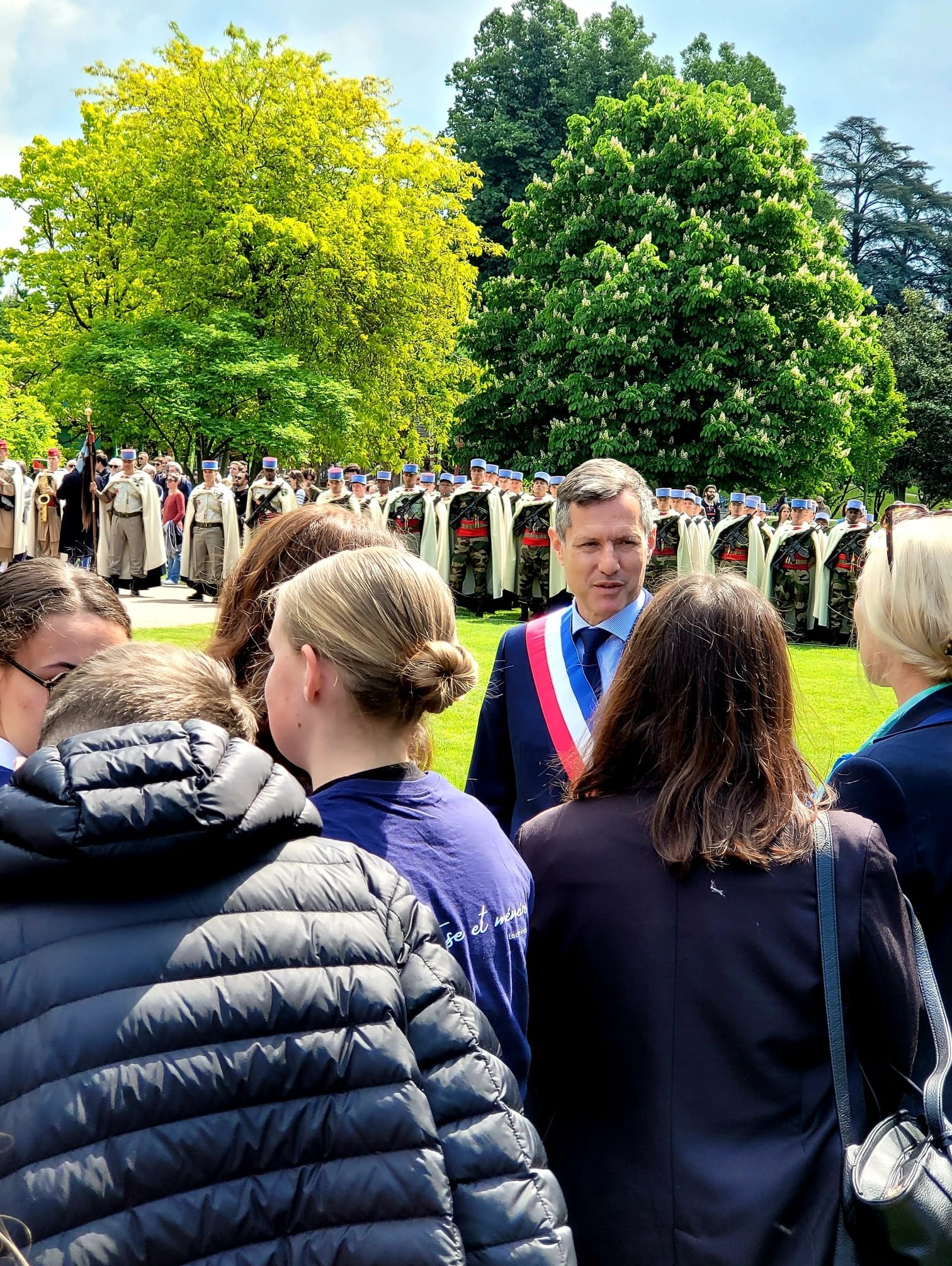 Aujourd’hui 80 ans après, les jeunes de la classe de 2nde3 dite classe engagée ont participé à la commémoration du 8 mai auprès des instances militaires et civiles. Grâce à la directrice de l’OnacVG, Mme Laure Bonnet, ces élèves engagés ont activement participé à la cérémonie puisque Eloise et Julie ont fait partie des jeunes apportant la flamme de la Nation, Clémence et Agathe ont lu des textes rendant hommage aux victimes de cette guerre, sous les yeux d’Inès porte-drapeau de la SMLH.
