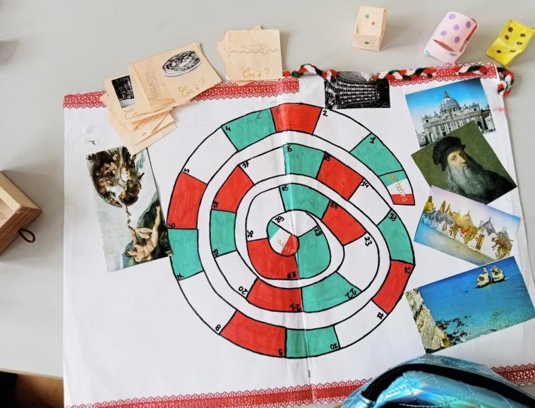 Après avoir découvert les villes, l’art, la culture et la gastronomie italiennes, les élèves de 6ème et de 5ème du Club Italien, ont réalisé des jeux de l’oie intitulés « GIRO D’ITALIA » (Tour d’Italie) à travers un questionnaire très amusant sur l’Italie.