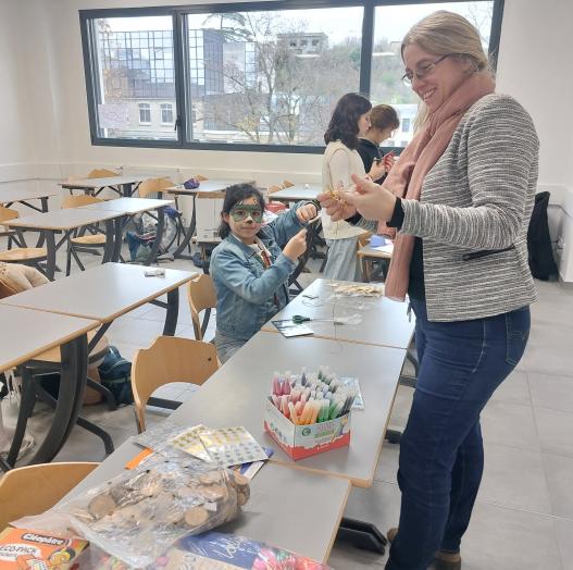 Défis sportifs, confection de cartes de vœux ou de bracelets, ateliers de danse et de karaoké, jeu du loup-garou ou course de robots ont rythmé une après-midi haute en couleur, le tout accompagné d’une scène ouverte qui a permis de mettre en lumière les multiples talents de nos élèves et enseignants. La traditionnelle distribution de pains au chocolat est venue clôturer ce moment convivial.