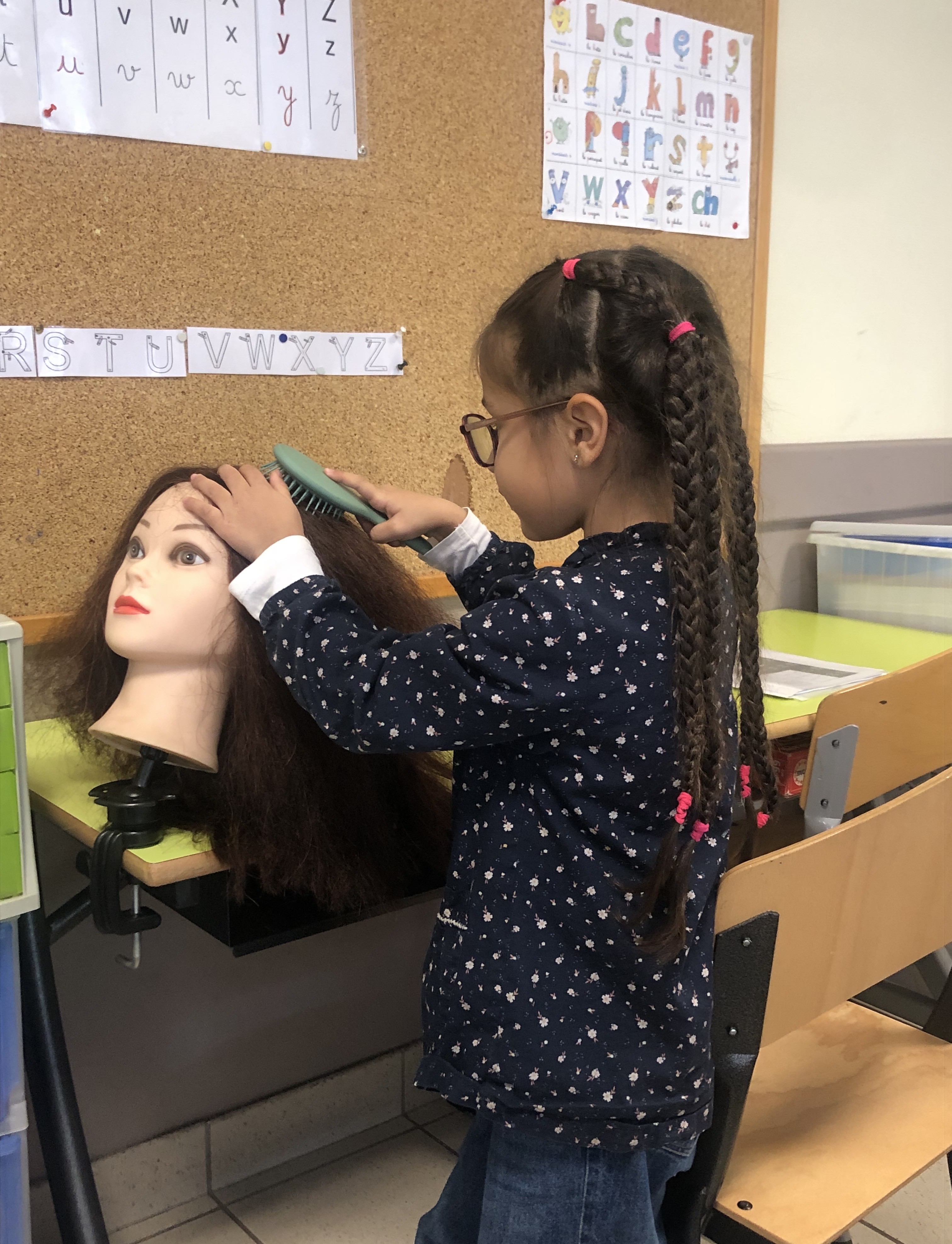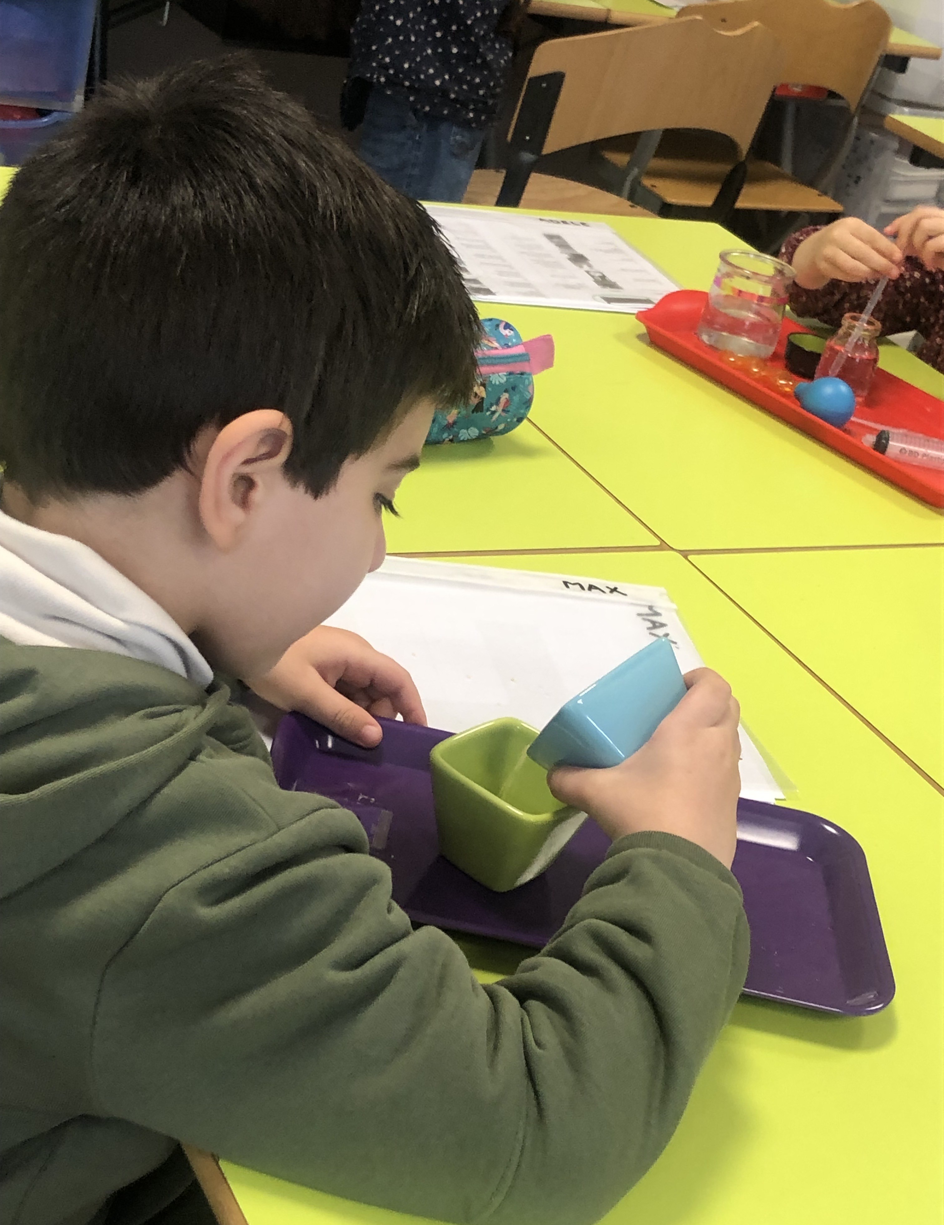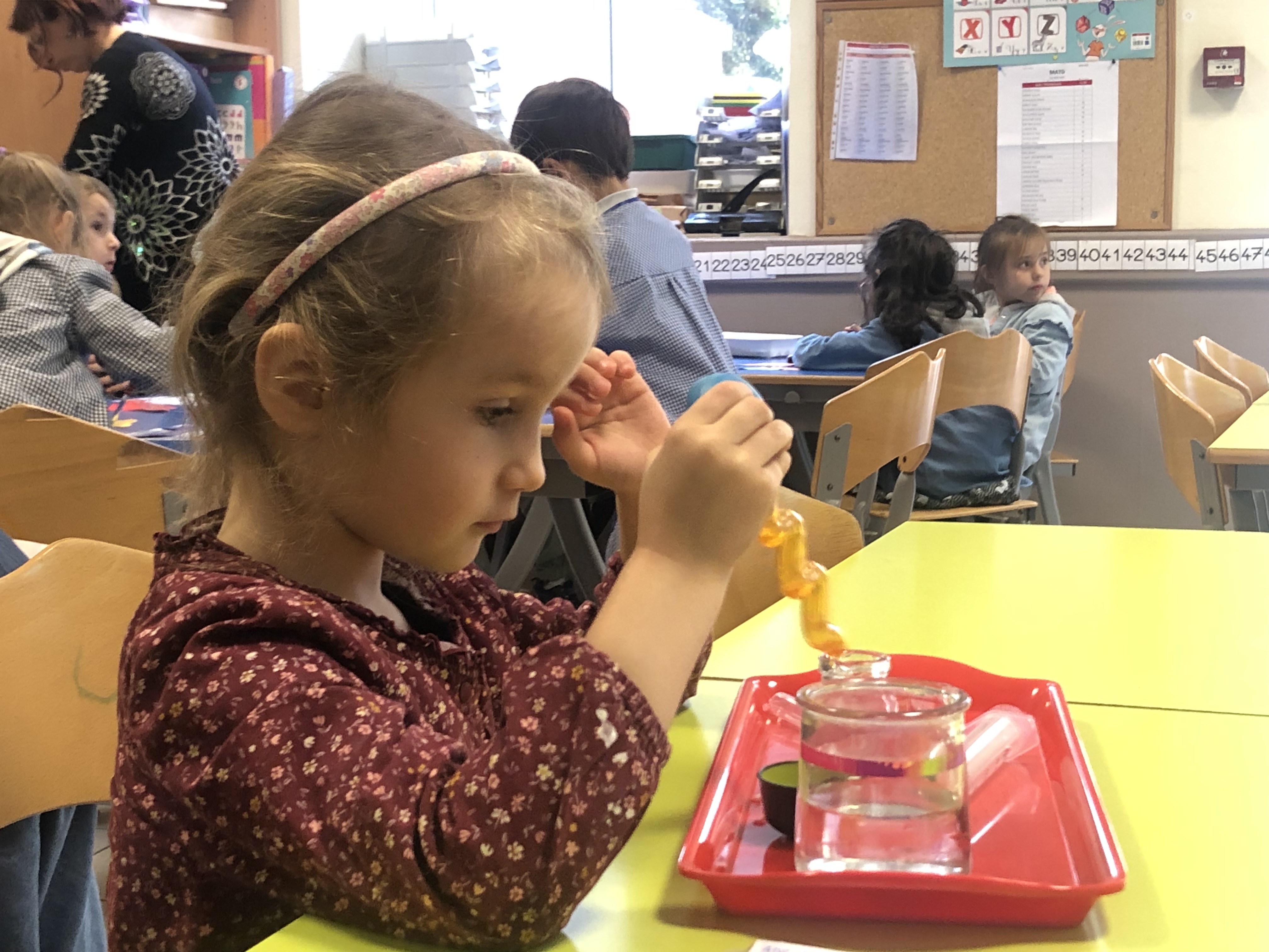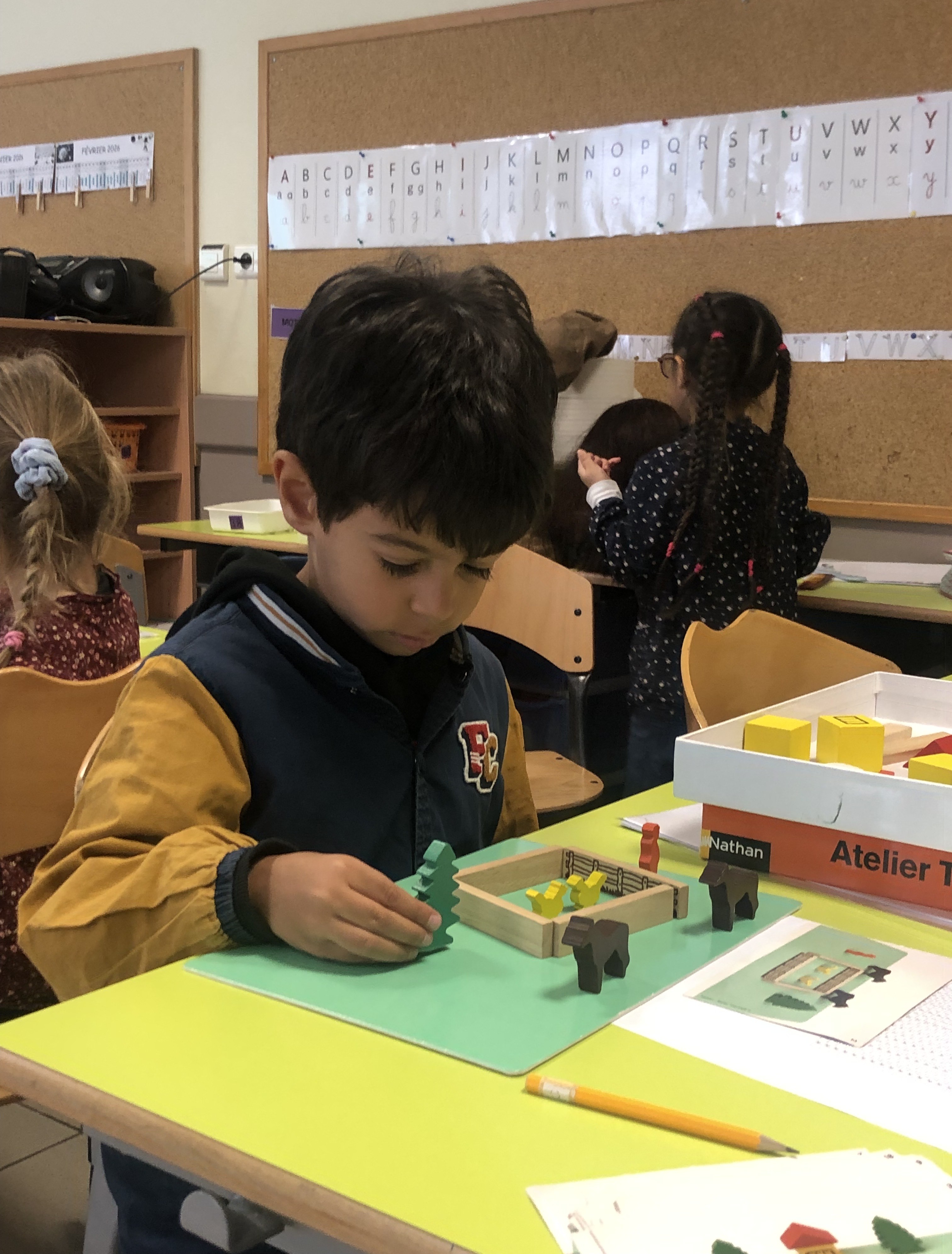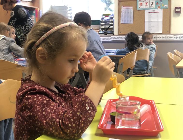 Les élèves de la classe de grande section renforcent leurs compétences à travers différents ateliers de manipulation et d'observation et jouent à reproduire des situations de la vie quotidienne pour expérimenter différents rôles sociaux.