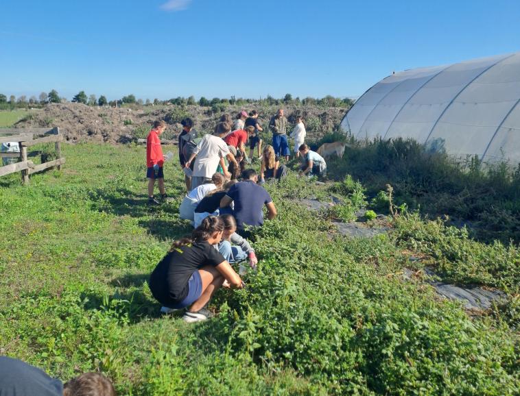 Les journées à la Ferme ont commencé cette semaine pour nos 6e qui découvrent avec bonheur, à quelques kilomètres de leur établissement, la « nature », les animaux et révisent avec entrain autour des noms de légumes, du maraîchage, en caressant des lapins, des chèvres, des chevaux ou bien en admirant le lama mais aussi en goûtant de nouvelles saveurs.