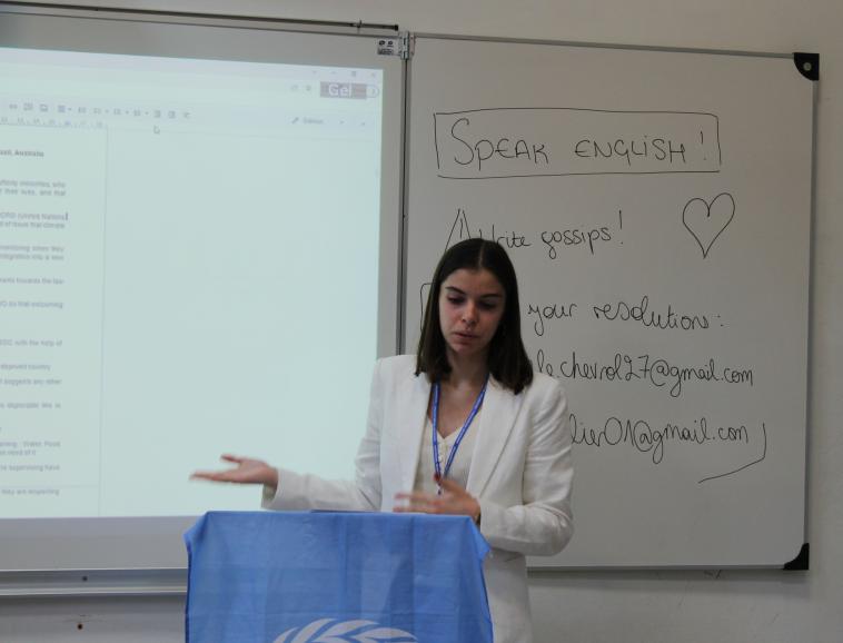 L'objectif du MUN est de récréer les conférences internationales de l'ONU où chaque élève a la charge de représenter un pays et sa politique. Maîtrise de l'anglais, compétences en communication, diplomatie mais aussi capacité d'analyse des politiques internationales et de résolutions de conflits sont les qualités nécessaires pour les conférences MUN. Nos élèves et ceux du lycée Fénelon la Trinité ont relevé le défi avec assiduité et implication.