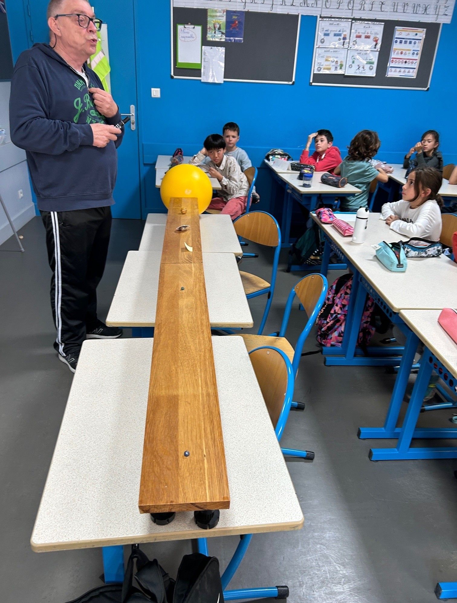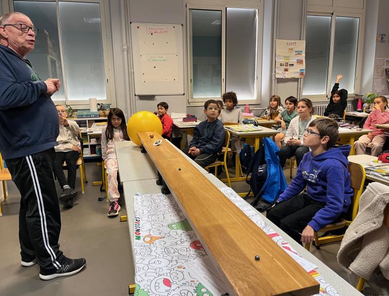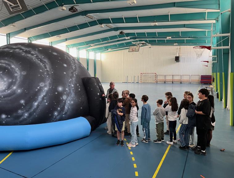 Les élèves de la classe de CM1 dans le cadre d’une séquence sur le système solaire ont participé à deux moments forts . Grâce à un partenariat avec l’association des Pléiades, les élèves ont pu observer un ciel étoilé dans un planétarium. Ils ont aussi bénéficié d’une intervention en classe d’un membre de l’association sur la perception des distances entre les planètes.