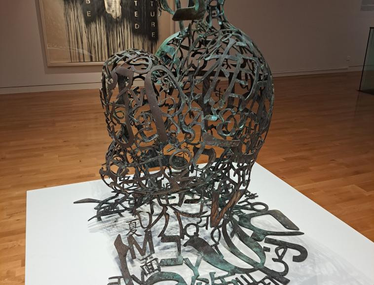 Né en 1955 à Barcelone, donc artiste méditerranéen, Jaume PLENSA avait déjà été invité à Valence en 1994 pour une biennale intitulée "Un sculpteur, une ville". Il avait alors réalisé 21 portes en bronze disséminées dans la ville. Cela tombait évidemment sous le sens qu'il réponde présent et intervienne à nouveau légitimement trente ans plus tard. Mais cette fois, il répond à une commande spécifique de la ville de Valence avec une sculpture en acier inoxydable de près de 5 mètres de haut et de 1.5 millions d’euros. Intitulée Le messager, sa statue installée place des Ormeaux correspond à une sculpture en dentelle de neuf alphabets qui se mélangent entre eux. Elle figure un corps anthropomorphe, une silhouette ouverte faite de pleins et de vides, de lettres entrelacées et soudées les unes aux autres pour former une résille aérienne et diaphane qui semble en lévitation et qui accueille le spectateur. Ce dernier peut effectivement s’immerger dedans comme dans un abri accueillant et protecteur.