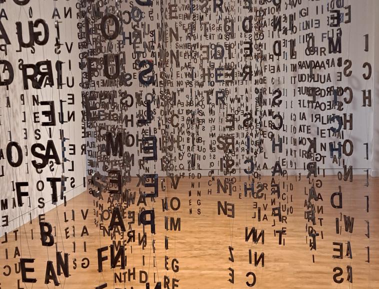 L’importance du texte et des idéogrammes est capitale dans sa démarche. L’artiste associe et mélange des alphabets qui cohabitent dans le monde (latin, grec, cyrillique, arabe, chinois, arménien pour la première fois à Valence, géorgien, hébreu, hindi, japonais…) dans un message d’universalité, car nous sommes tous semblables. Les lettres sont les racines qui nous constituent et qui nous définissent. Elles nous permettent de lire et de dire le monde. Grâce à elles, nous partageons tous le même lien avec la terre ; ce lien indispensable entre la terre et nous. Il y a l’idée que nous sommes des êtres de communication même si l’humanité est imparfaite et tente de toujours faire mieux pour y parvenir.