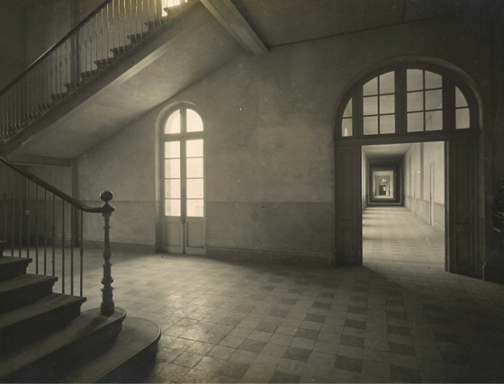 En face de nous, le couloir des classes. Ce couloir emprunté journellement en rang par deux et en silence pour tous les mouvements de la journée. Devant chaque porte des ombres nous accueillent :