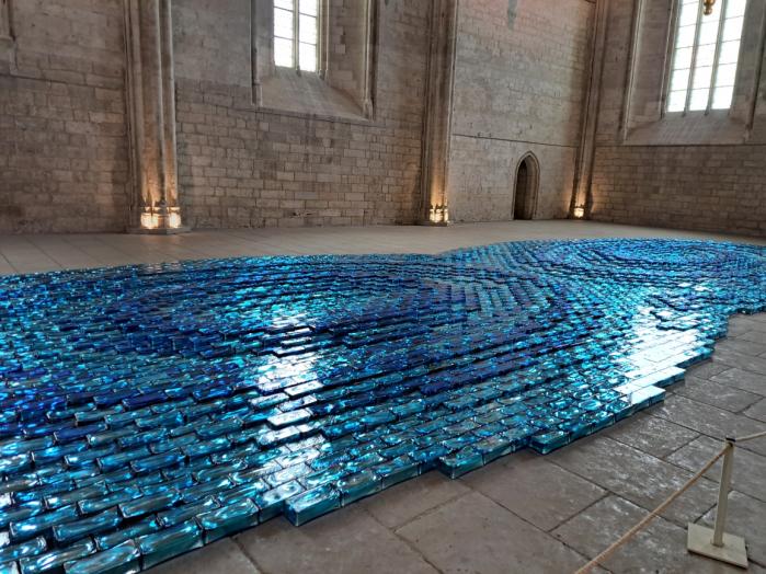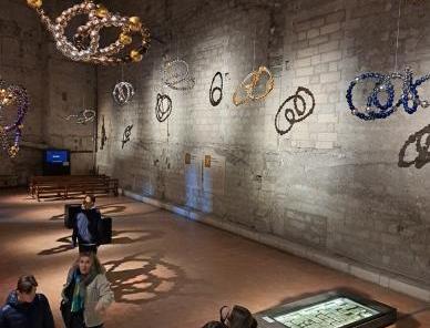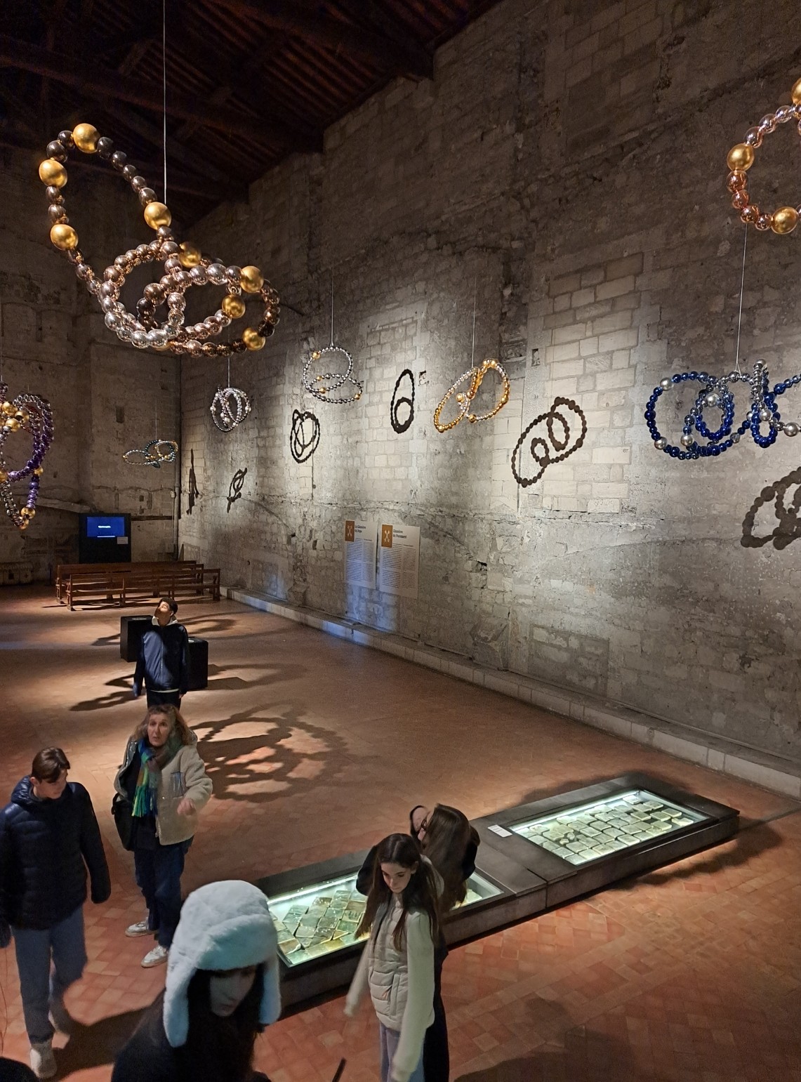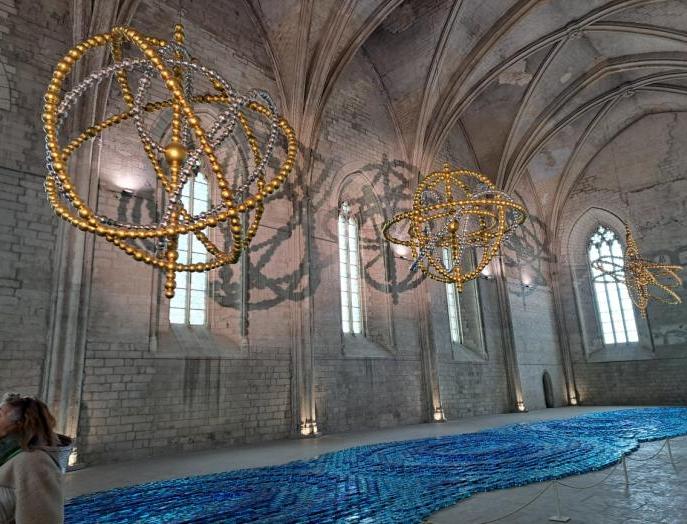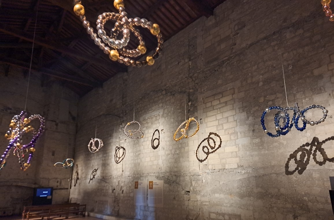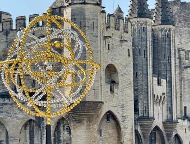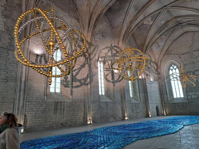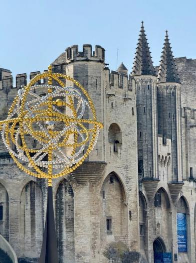 Intitulée « Cosmos ou Les fantômes de l’amour », cette exposition fête un anniversaire : les 25 ans d’Avignon capitale européenne de la culture et les 30 ans de son inscription au patrimoine mondiale de l’UNESCO. Nous avons pu investir trois lieux : le palais des papes, le petit palais ainsi que le pont d’Avignon rendu difficilement accessible en raison des 90 kms heure du mistral particulièrement fort le jour de notre visite.