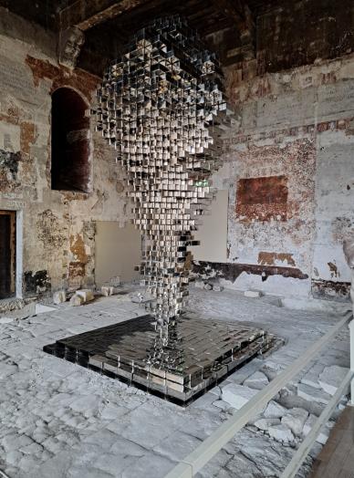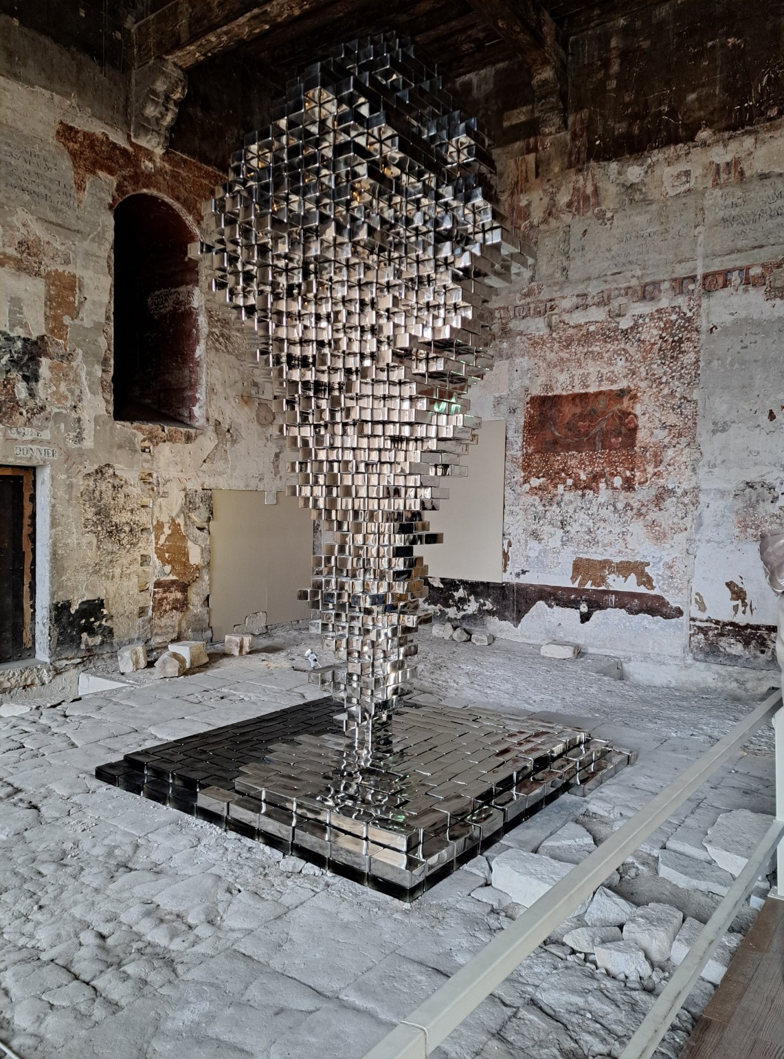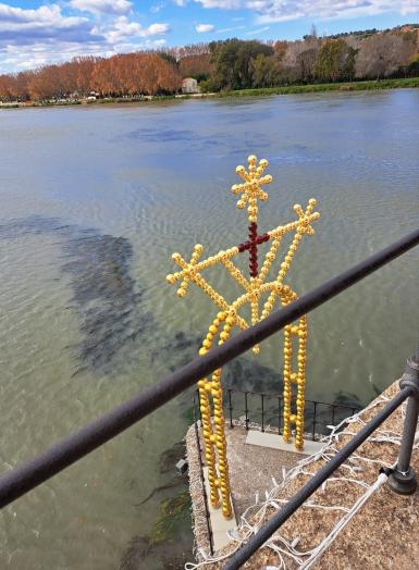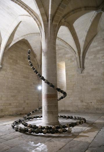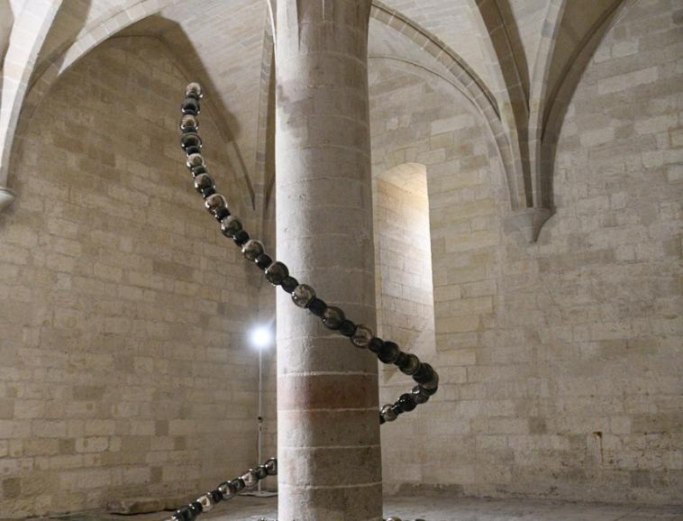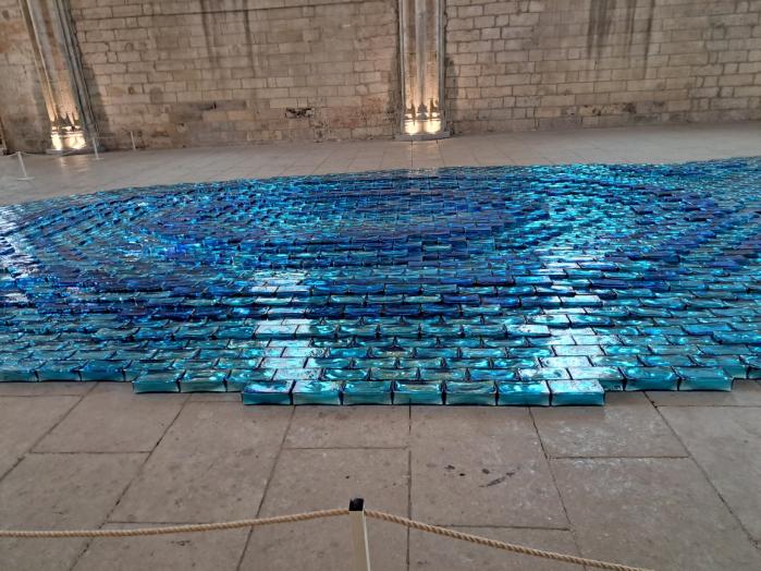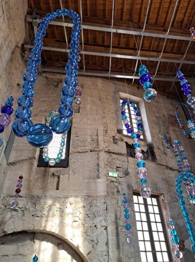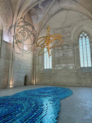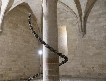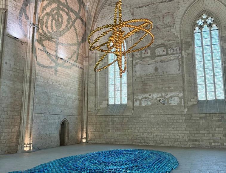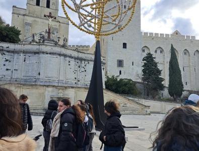 Intitulée « Cosmos ou Les fantômes de l’amour », cette exposition fête un anniversaire : les 25 ans d’Avignon capitale européenne de la culture et les 30 ans de son inscription au patrimoine mondiale de l’UNESCO. Nous avons pu investir trois lieux : le palais des papes, le petit palais ainsi que le pont d’Avignon rendu difficilement accessible en raison des 90 kms heure du mistral particulièrement fort le jour de notre visite.