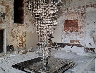 L’artistique s’inscrit justement dans ce dialogue étroit avec l’architecture et la symbiose entre les deux s’opère. D’ailleurs, cette exposition représente pour Jean-Michel OTHONIEL un challenge et un défi technique, une prouesse personnelle et professionnelle. Pour la première fois, des œuvres ont été suspendues au plafond, chose jamais réalisée auparavant et pourtant rendue possible.