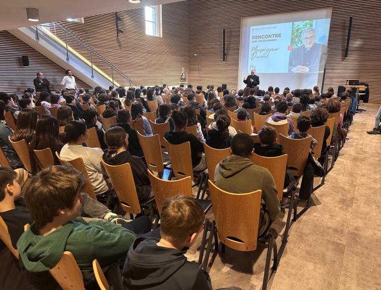 Monseigneur François DURAND, évêque de Valence, est intervenu auprès de tous nos collégiens. Après une rapide présentation de son ministère et du rôle d’un évêque, il a pu répondre à leurs questions. Merci pour ces beaux moments d’échange.
