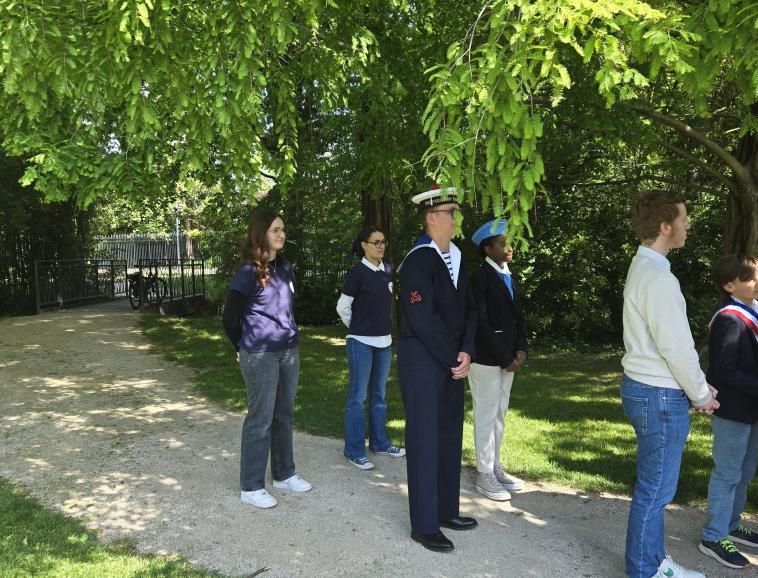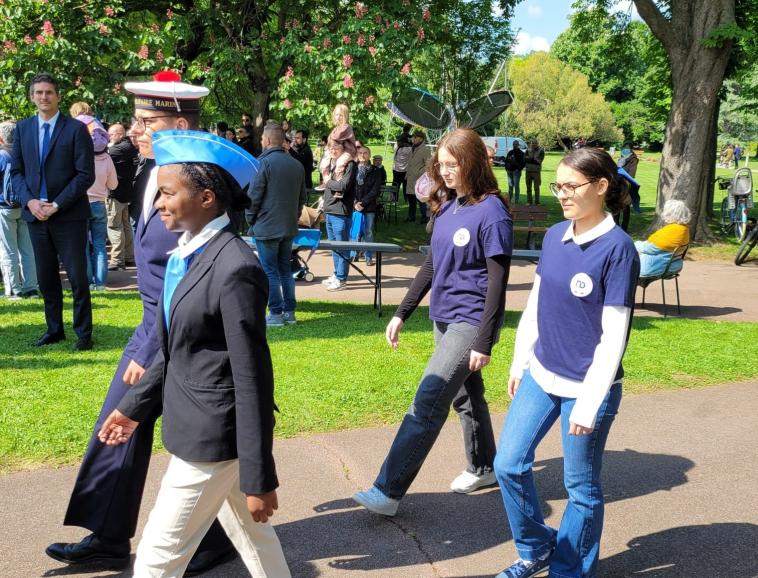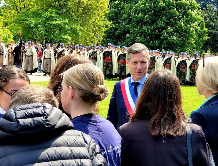 Aujourd’hui 80 ans après, les jeunes de la classe de 2nde3 dite classe engagée ont participé à la commémoration du 8 mai auprès des instances militaires et civiles. Grâce à la directrice de l’OnacVG, Mme Laure Bonnet, ces élèves engagés ont activement participé à la cérémonie puisque Eloise et Julie ont fait partie des jeunes apportant la flamme de la Nation, Clémence et Agathe ont lu des textes rendant hommage aux victimes de cette guerre, sous les yeux d’Inès porte-drapeau de la SMLH.