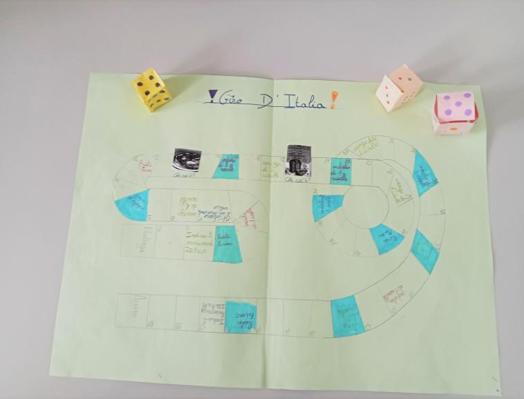 Après avoir découvert les villes, l’art, la culture et la gastronomie italiennes, les élèves de 6ème et de 5ème du Club Italien, ont réalisé des jeux de l’oie intitulés « GIRO D’ITALIA » (Tour d’Italie) à travers un questionnaire très amusant sur l’Italie.