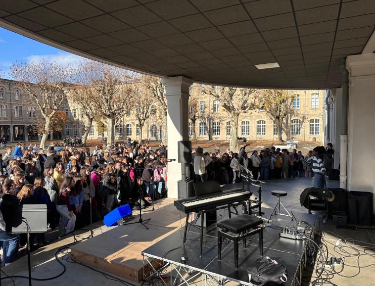Dans un timing presque parfait, la pluie a laissé place au soleil pour la scène ouverte réalisée sur le temps de midi. Les multiples talents de nos élèves ont ainsi pu être mis à l'honneur : danses, chants et musiques ont rythmé la pause repas des collégiens et lycéens.