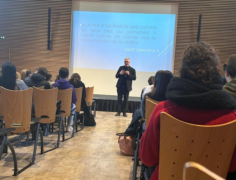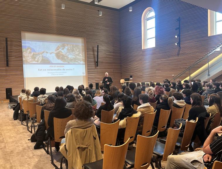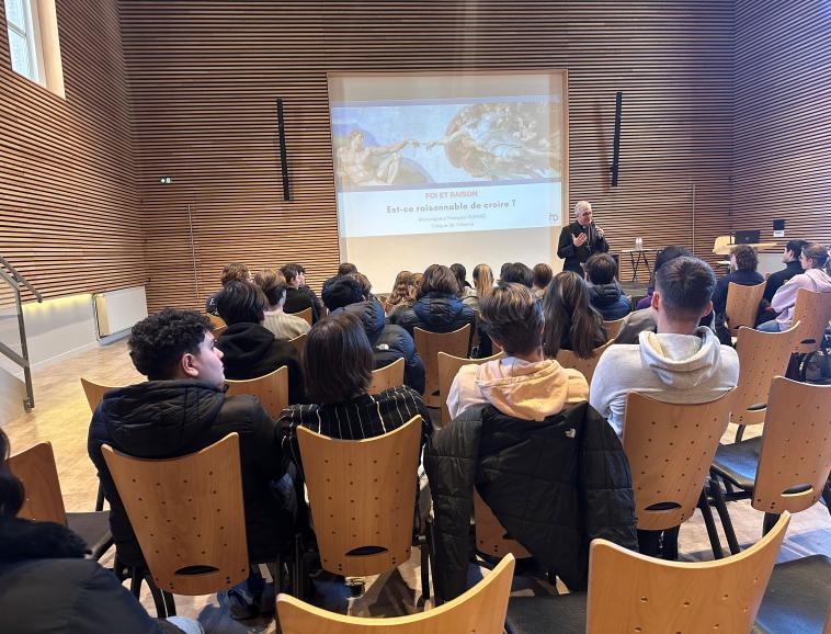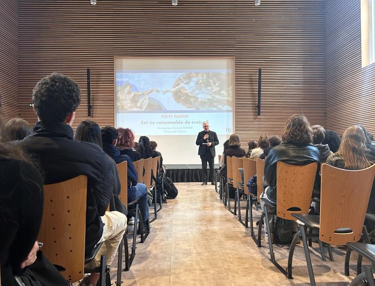 Les élèves de terminale ont eu la chance de rencontrer Monseigneur François DURAND, évêque de VALENCE, qui est intervenu sur le thème : Foi et Raison, est-ce raisonnable de croire ?