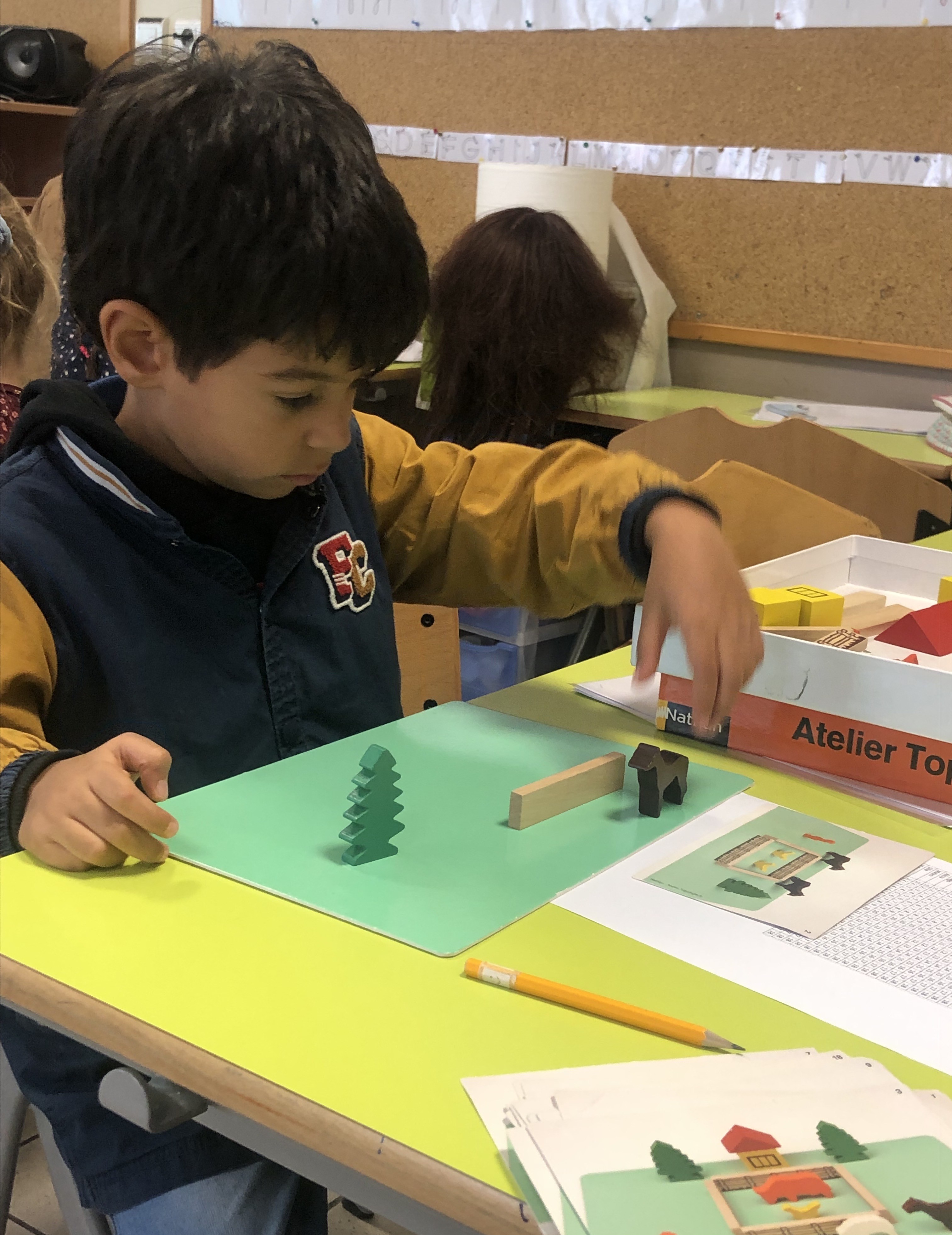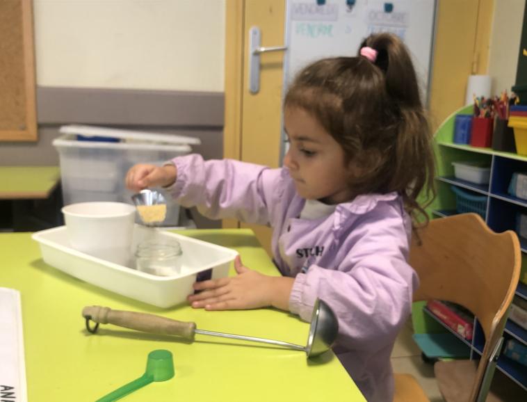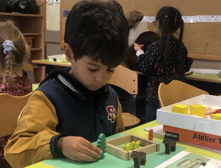 Les élèves de la classe de grande section renforcent leurs compétences à travers différents ateliers de manipulation et d'observation et jouent à reproduire des situations de la vie quotidienne pour expérimenter différents rôles sociaux.