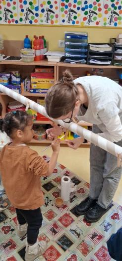 - « J’ai beaucoup aimé ce moment avec la petite section. Ils étaient assez calmes et écoutaient avec attention. Malgré leur stress ou leur appréhension, ils ont fini par se sentir à l’aise avec nous, les élèves de terminale. J’ai adoré l’atelier peinture avec eux. Ils semblaient très heureux et moi aussi ! Cela a renforcé mon envie de continuer mon projet d’être dans l’enseignement plus tard. »