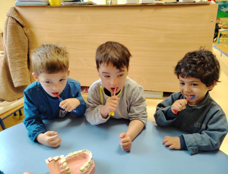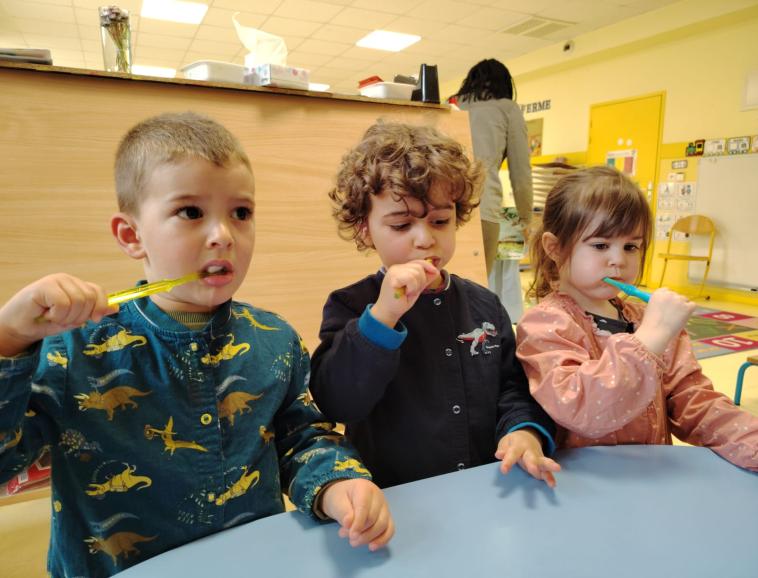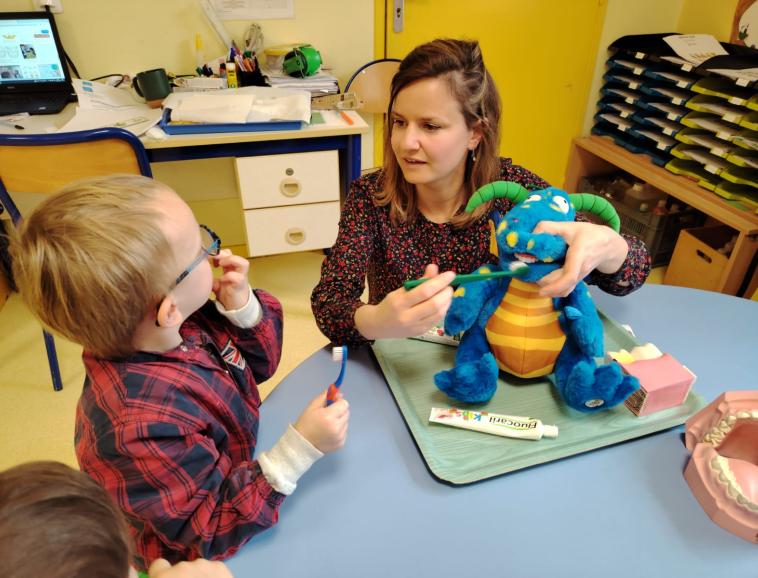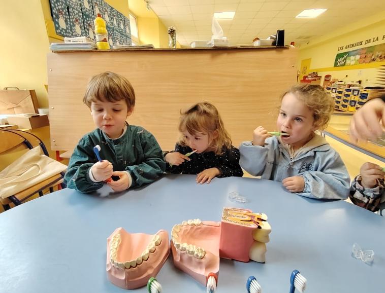 Le vendredi 21 mars, nous avons reçu Mme SUREL, infirmière PMI en classe de PS maternelle pour une séance autour des dents et leur brossage. Lolita, équipée de son matériel, a pu expliquer aux élèves, l'impact de l'alimentation sur les dents. Et surtout pourquoi le brossage des dents était important et à quelle fréquence.