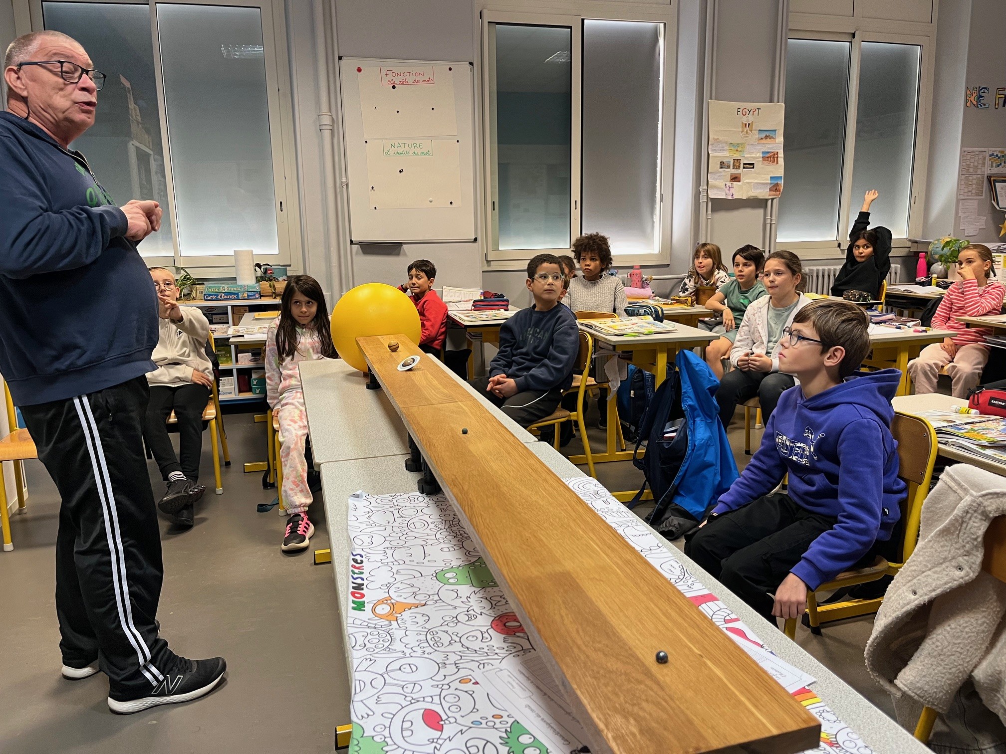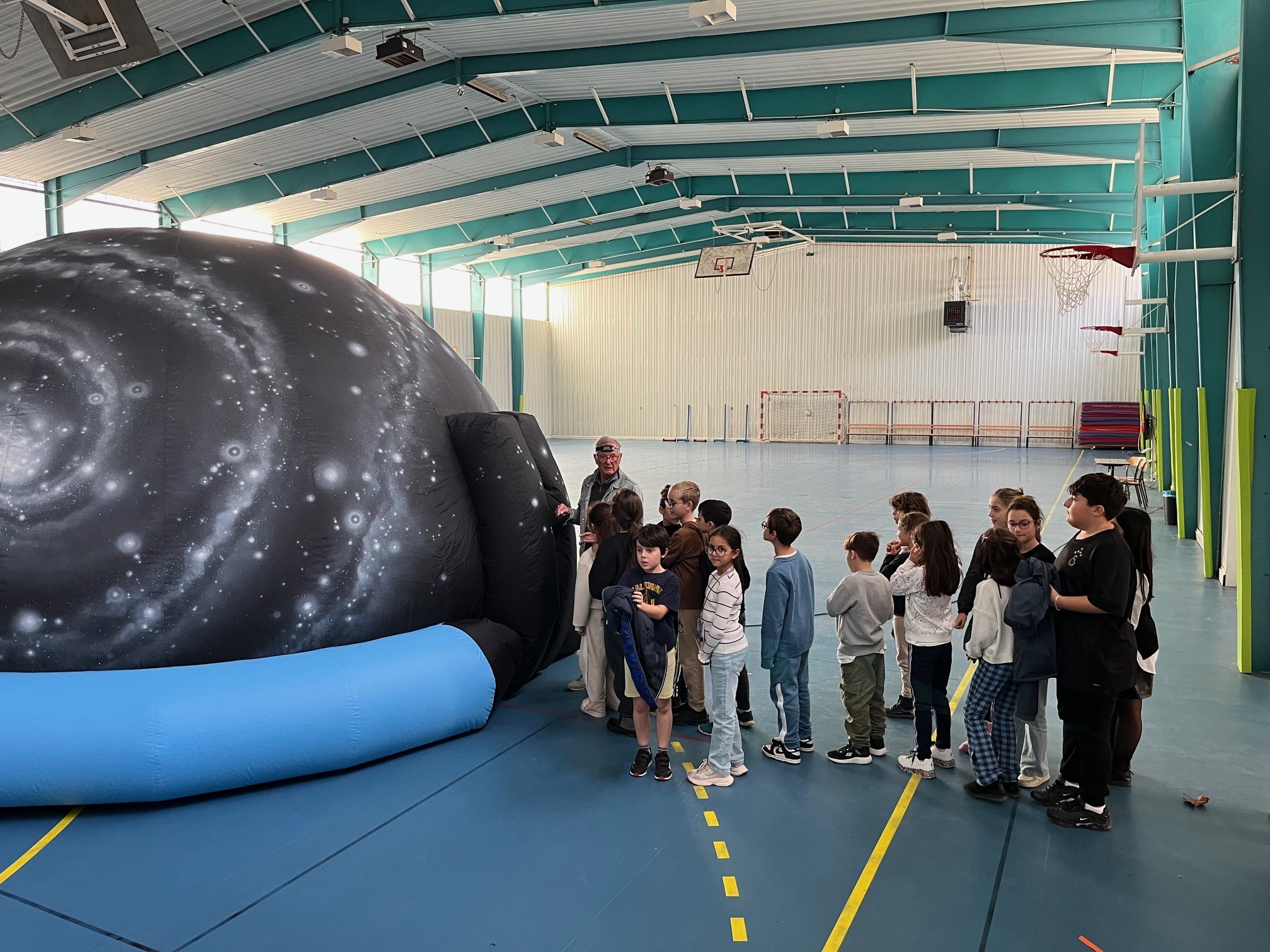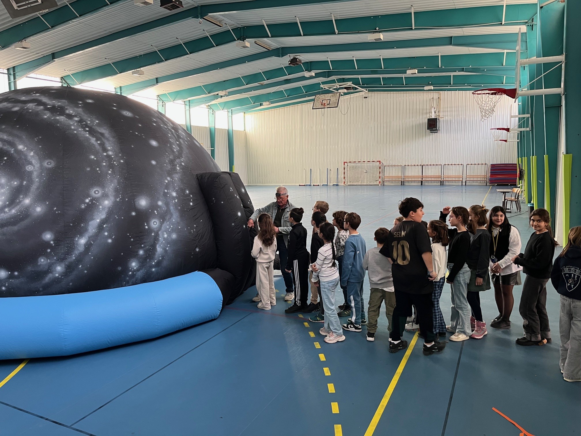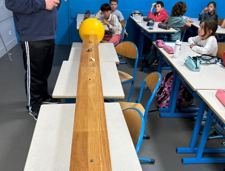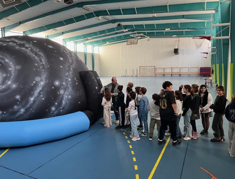 Les élèves de la classe de CM1 dans le cadre d’une séquence sur le système solaire ont participé à deux moments forts . Grâce à un partenariat avec l’association des Pléiades, les élèves ont pu observer un ciel étoilé dans un planétarium. Ils ont aussi bénéficié d’une intervention en classe d’un membre de l’association sur la perception des distances entre les planètes.