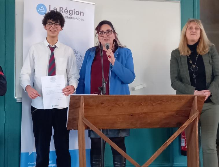 Pour cette phase territoriale, le thème imposé était "Le passé est une porte, l'avenir en est la clé" (Victor Hugo). Portée par Adrien Boulanger, notre équipe de 7 lycéens a affronté 4 autres lycées (Pierrelatte, Crest, Lyon et Tournon). La concurrence était rude, le niveau encore plus élevé que l'an dernier.