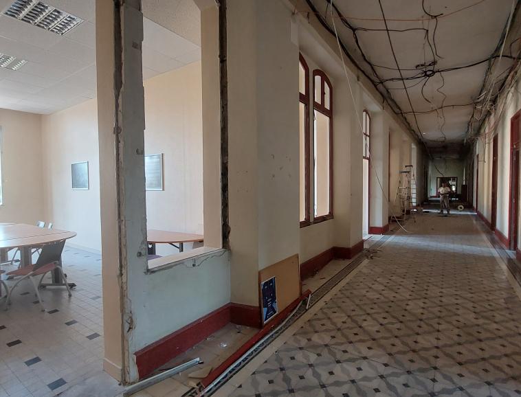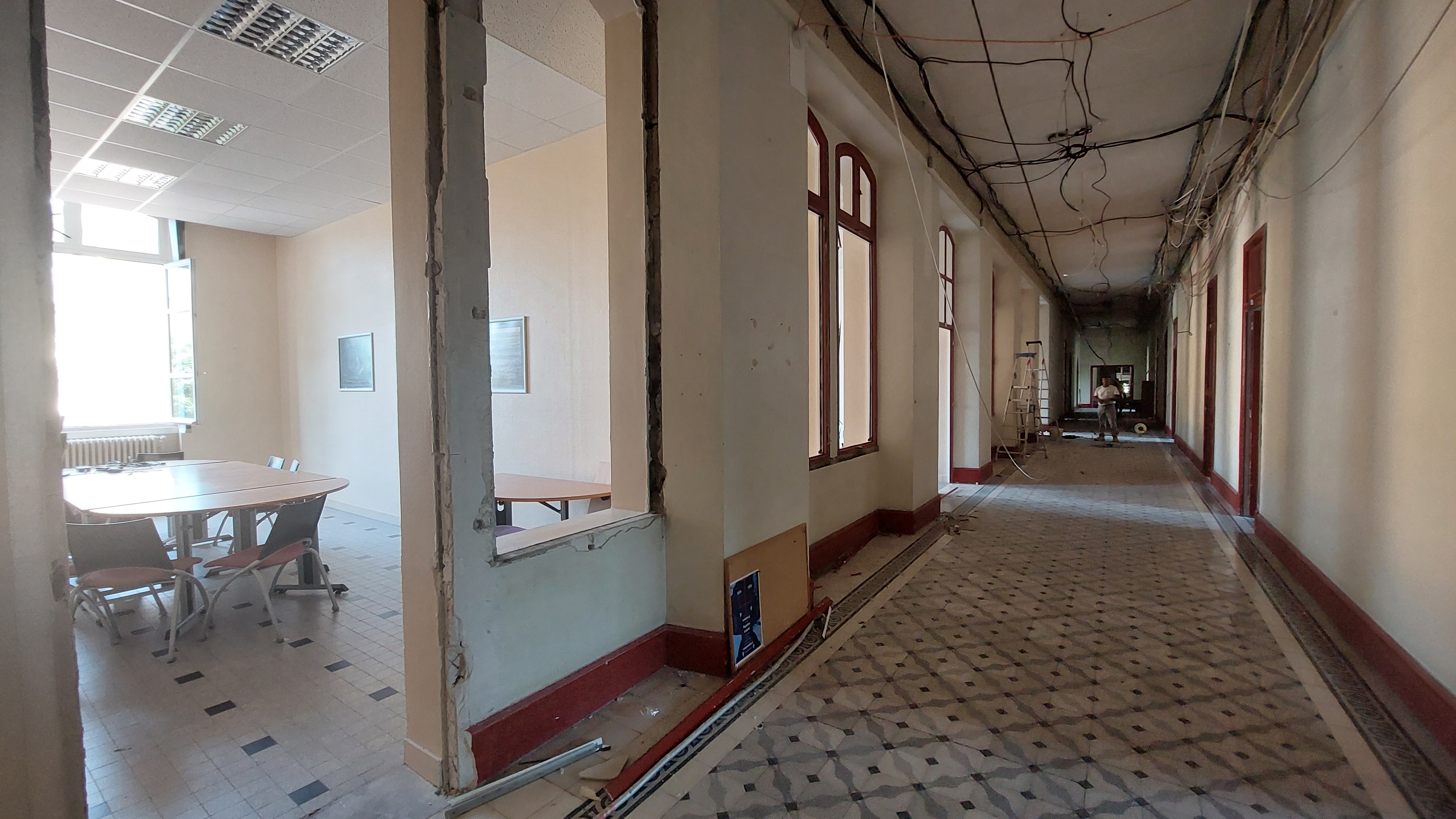 C’est dans un planning très serré que la mise en conformité du couloir du premier étage a été faite cet été. A notre repise au 18 août, la poussière avait disparu et avait laissé place à un couloir entièrement rénové et conforme à la règlementation. Remplacement de toutes les menuiseries par des portes coupe-feu ½ heure mise en place de deux portes de recoupement dans la circulation, changement des vitrages par des vitrages coupe-feu