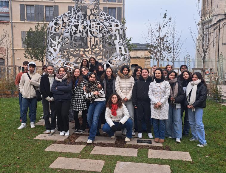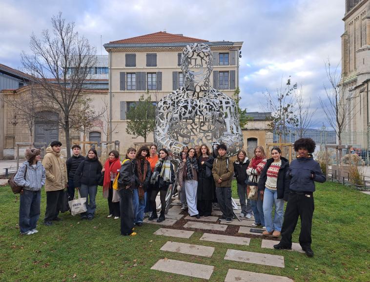 Les lycéens de la spécialité Arts Plastiques et ceux de l'enseignement optionnel ont pu se rendre au musée et découvrir une soixantaine de travaux de ce sculpteur catalan. Ils ont pu constater que son œuvre est avant tout dédiée à la sculpture dans l’espace public, mais pas seulement. Jaume PLENSA expose aussi des dessins monumentaux et réalise des installations. Il travaille par séries et dit avoir besoin de vérifier les choses avec ses mains : "J’ai mes yeux dans les doigts". D’ailleurs, il affirme qu’il faut caresser la matière pour comprendre. Ce qui l’intéresse réellement, c’est par conséquent la matière et la matérialité : le bronze, l’albâtre et l’acier.