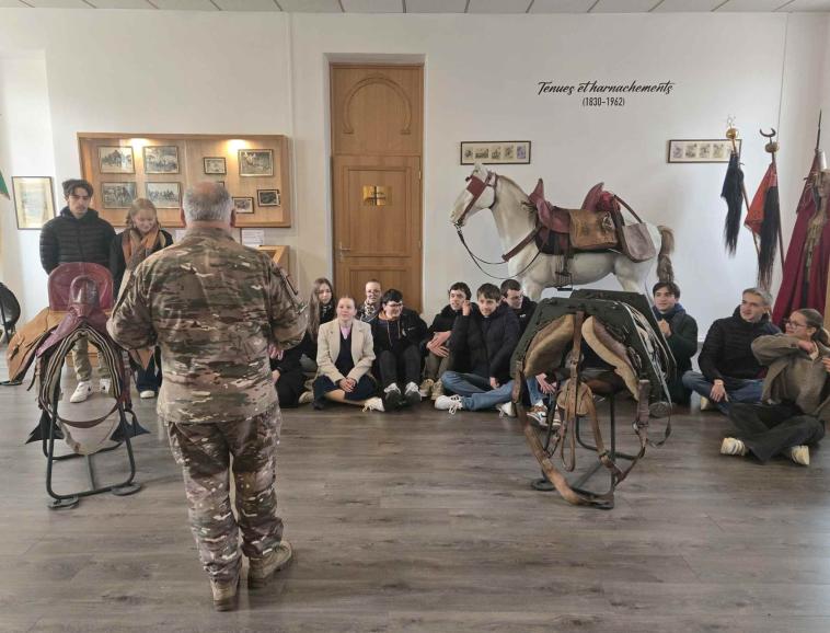 Enfin, ils ont continué leur après-midi avec la visite du musée des Spahis. Après avoir été accueillis par l’adjudant-chef Laurent Henneron , les élèves ont rencontré la mascotte du régiment puis ils ont pu connaître, grâce à au dynamisme du conservateur adjoint du musée, l’histoire des cipayes, mercenaires dans l’empire ottoman, devenus les Spahis par décret du 10 septembre 1834.