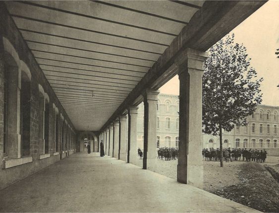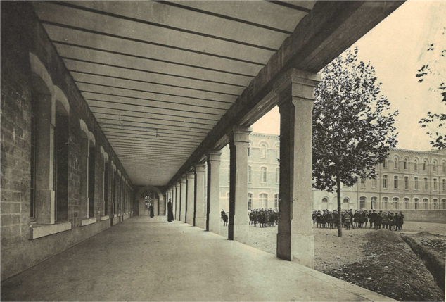 En face de nous, le couloir des classes. Ce couloir emprunté journellement en rang par deux et en silence pour tous les mouvements de la journée. Devant chaque porte des ombres nous accueillent :